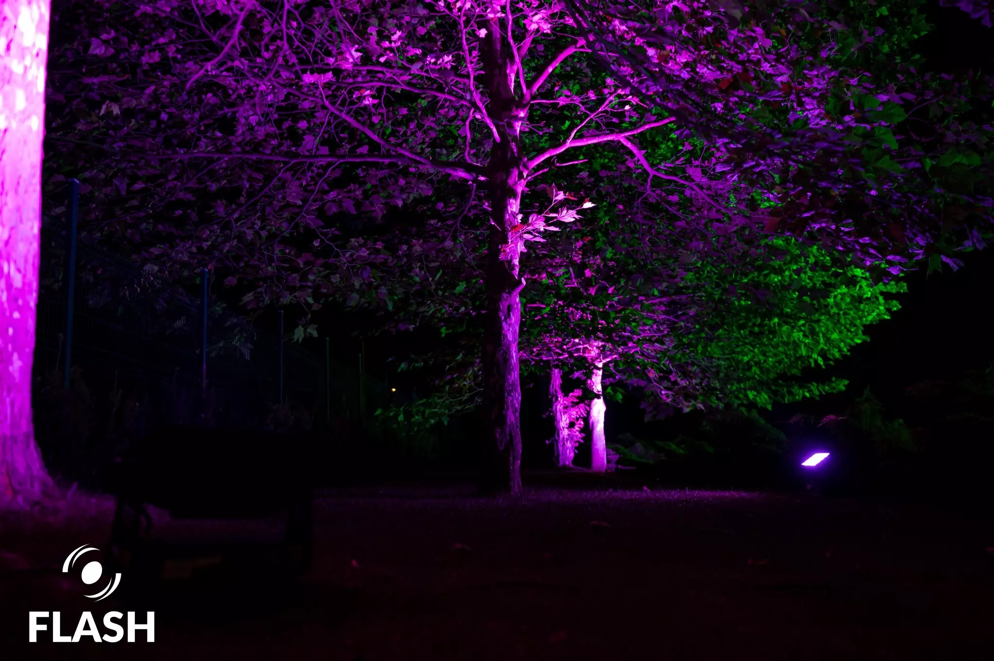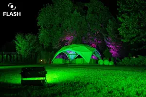 LED-Fluter ausgestattet mit 44 Dioden (RGBW + AUV) mit einer Leistung von jeweils 15 W.
