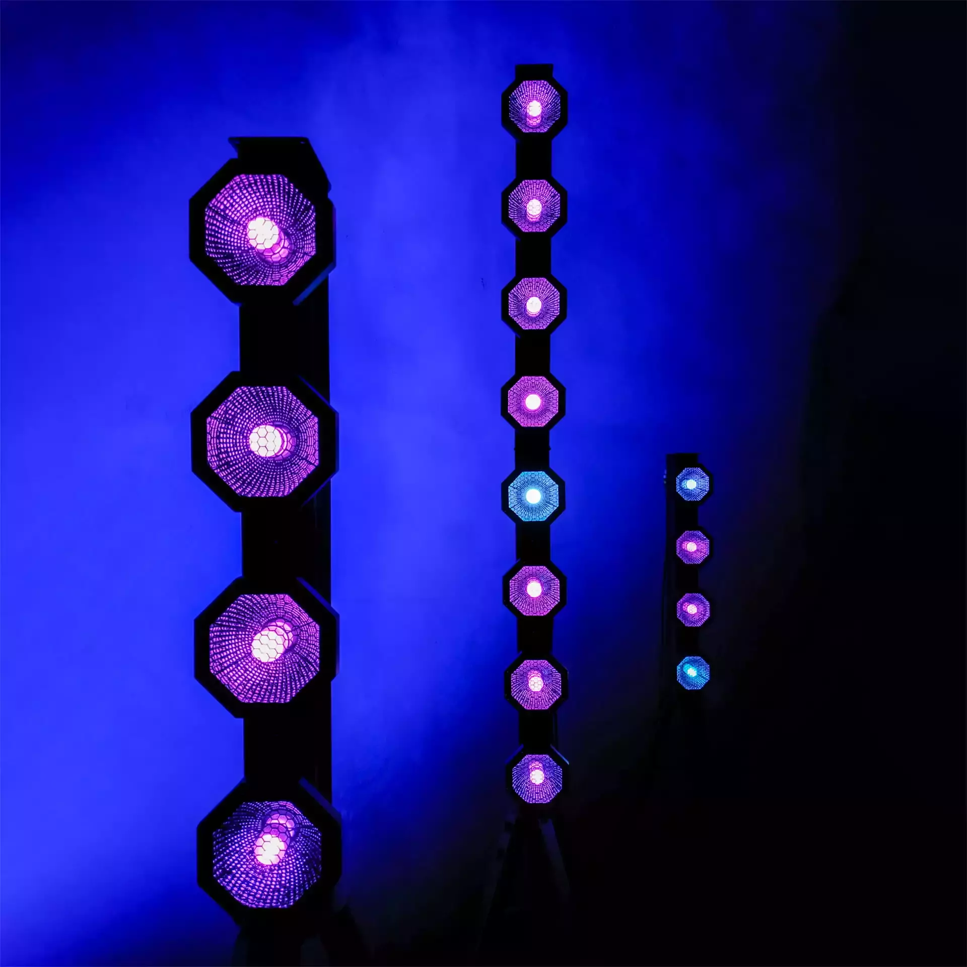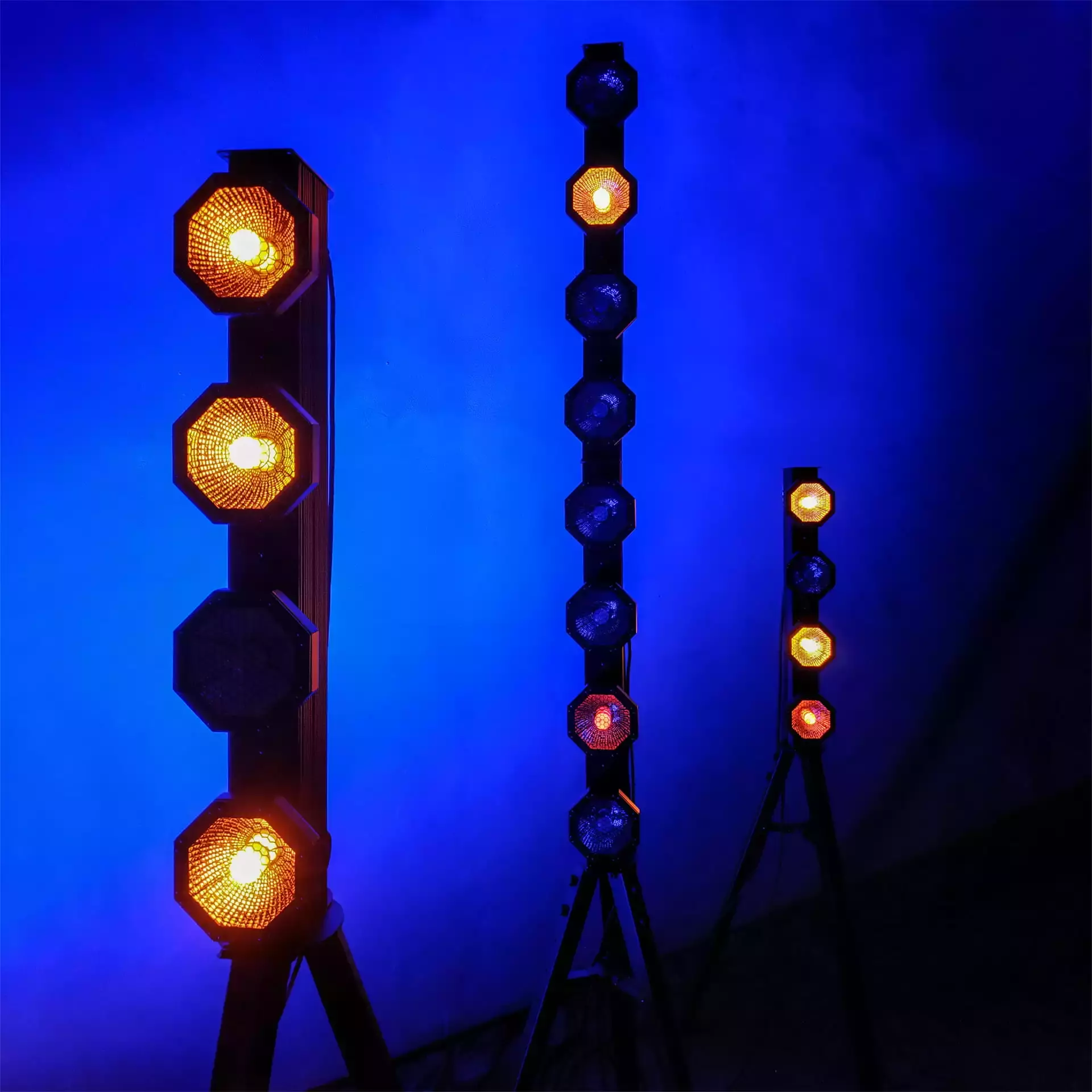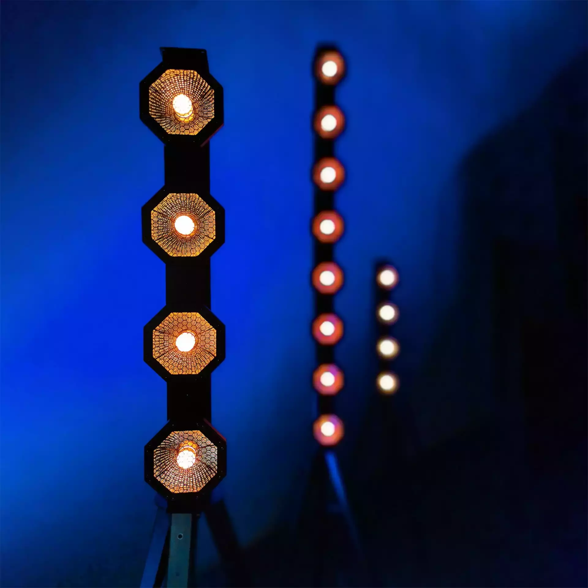 OCTO Sunbar 430 ist eine Kombination aus einzigartigem Design und innovativer polnischer Technologie. Eine sehr leistungsstarke 4x30W-Lichtquelle, beeindruckt mit ihren hohen Parametern, die selbst die Erwartungen der anspruchsvollsten Implementierer erfüllen werden. Ausgestattet mit vier RGBW-Dioden ermöglicht er die Darstellung eines kompletten Farbspektrums und ist somit ein hervorragender Lichtpunkt im Bühnendesign. Eine eigene, dedizierte Firmware sorgt für eine intuitive Bedienung und zahlreiche Funktionen, die eine präzise Anpassung der Lichteffekte an die Veranstaltung ermöglichen. Dank der soliden Konstruktion und der modernen Optik ist die OCTO Sunbar 430 ein zuverlässiges Werkzeug in jedem professionellen Einsatz.