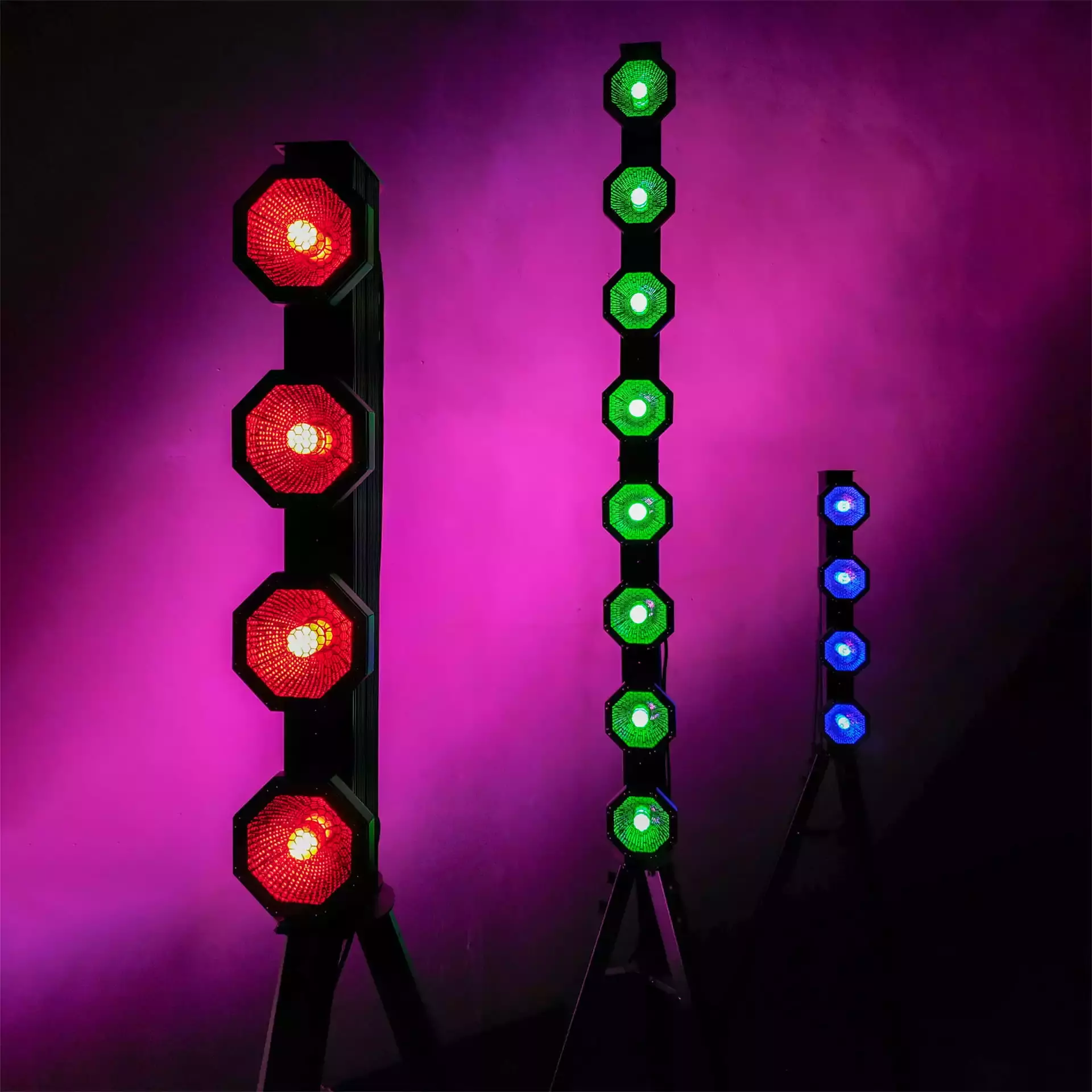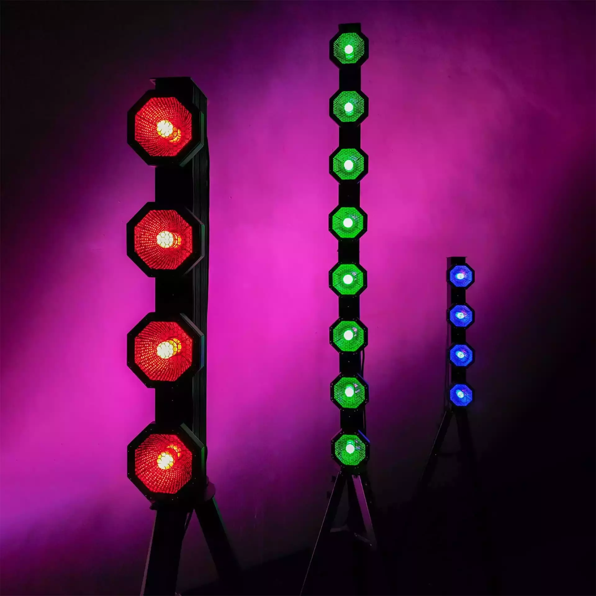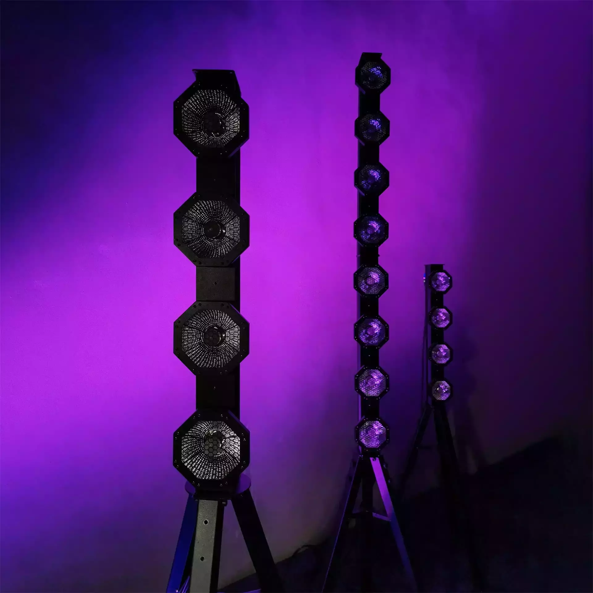OCTO Sunbar 430 ist eine Kombination aus einzigartigem Design und innovativer polnischer Technologie. Eine sehr leistungsstarke 4x30W-Lichtquelle, beeindruckt mit ihren hohen Parametern, die selbst die Erwartungen der anspruchsvollsten Implementierer erfüllen werden. Ausgestattet mit vier RGBW-Dioden ermöglicht er die Darstellung eines kompletten Farbspektrums und ist somit ein hervorragender Lichtpunkt im Bühnendesign. Eine eigene, dedizierte Firmware sorgt für eine intuitive Bedienung und zahlreiche Funktionen, die eine präzise Anpassung der Lichteffekte an die Veranstaltung ermöglichen. Dank der soliden Konstruktion und der modernen Optik ist die OCTO Sunbar 430 ein zuverlässiges Werkzeug in jedem professionellen Einsatz.