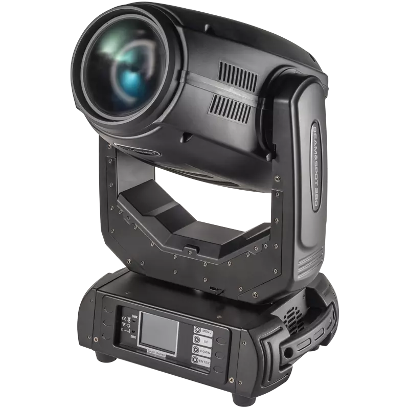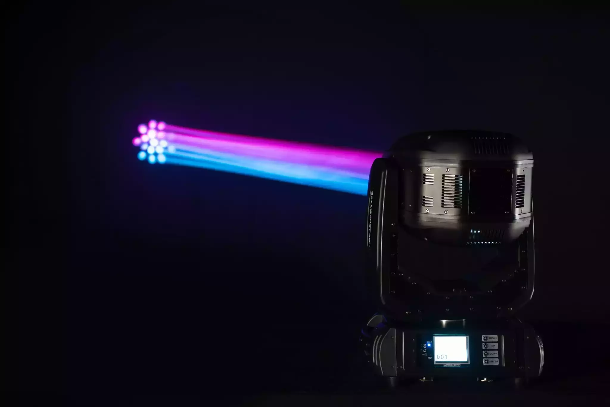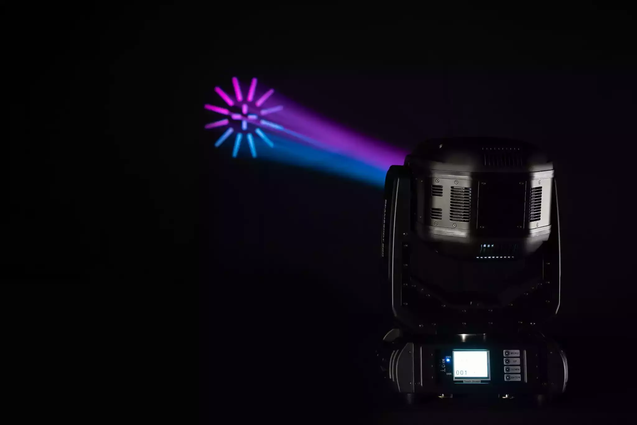 HYBRID 10R ist ein bewegliches Gerät, ausgestattet mit einem Zifferblatt mit dreizehn Farben + offen und einer sehr leistungsstarken 10R 280W-Halogenlampe.Darüber hinaus verfügt dieser Hybrid über zwei Scheiben mit austauschbaren Gobos (9 rotierende Gobos, 14 statische Gobos mit austauschbarem Schlitz), zwei unabhängig rotierende Prismen (6-Ebenen-Linearprisma, 8-Ebenen-Rotationsprisma), Frost, Fokus und Zoom mit einer Reichweite von (0⁰- 4⁰). Das Gerät verfügt außerdem über viele Betriebsmodi, was seine Vielseitigkeit und Funktionalität in verschiedenen Anwendungen erhöht.Dank der hohen Verarbeitungsqualität, der Betriebsgeschwindigkeit und der effektiven aktiven Kühlung verschafft sich HYBRID 10R einen Vorsprung am Markt.