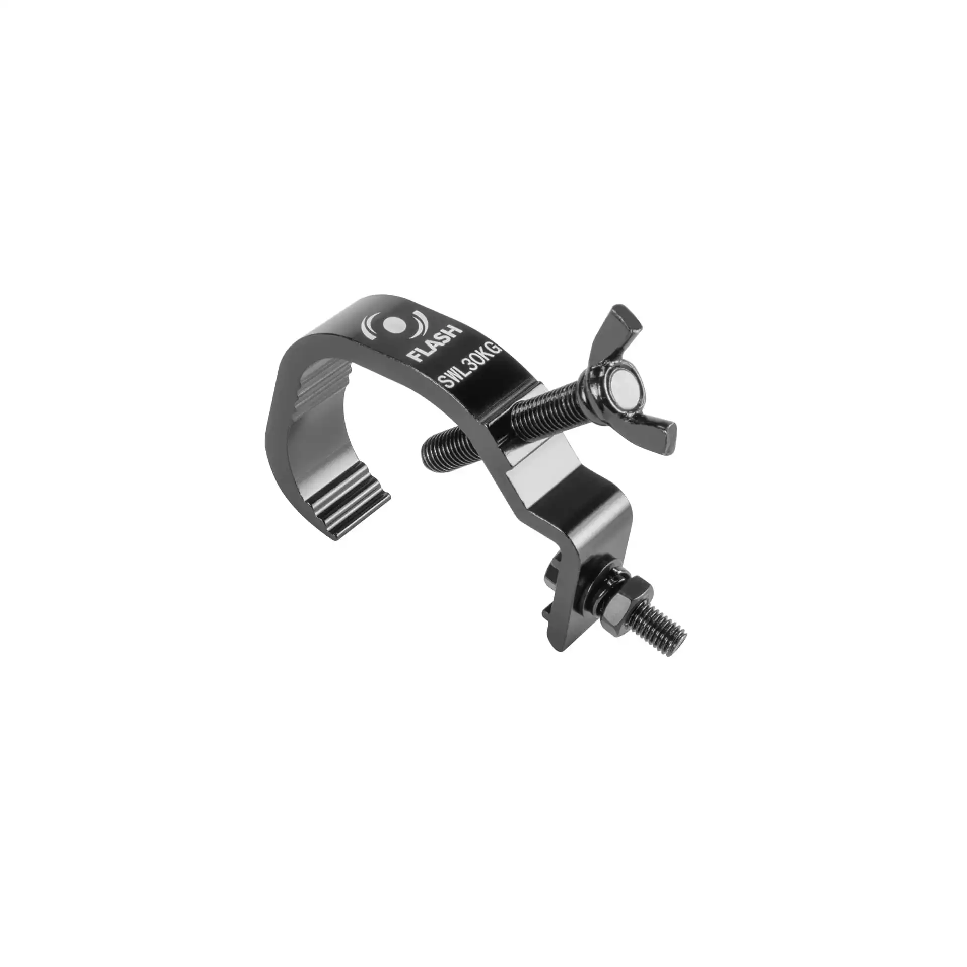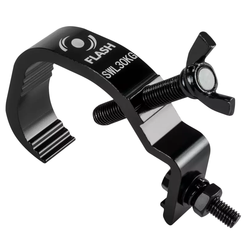 Schnell montierbarer Aluminiumhalter (Haken), der die Befestigung von Bühnen- und Beleuchtungsgeräten aller Art an Aluminiumrohrkonstruktionen mit einem Durchmesser von 50 mm ermöglicht.Der Haken wird direkt am Gerät verschraubt und ermöglicht dank der praktischen Rändelschraube eine schnelle Montage.Durch die solide Konstruktion hält der Haken Belastungen von bis zu 30 kg stand.