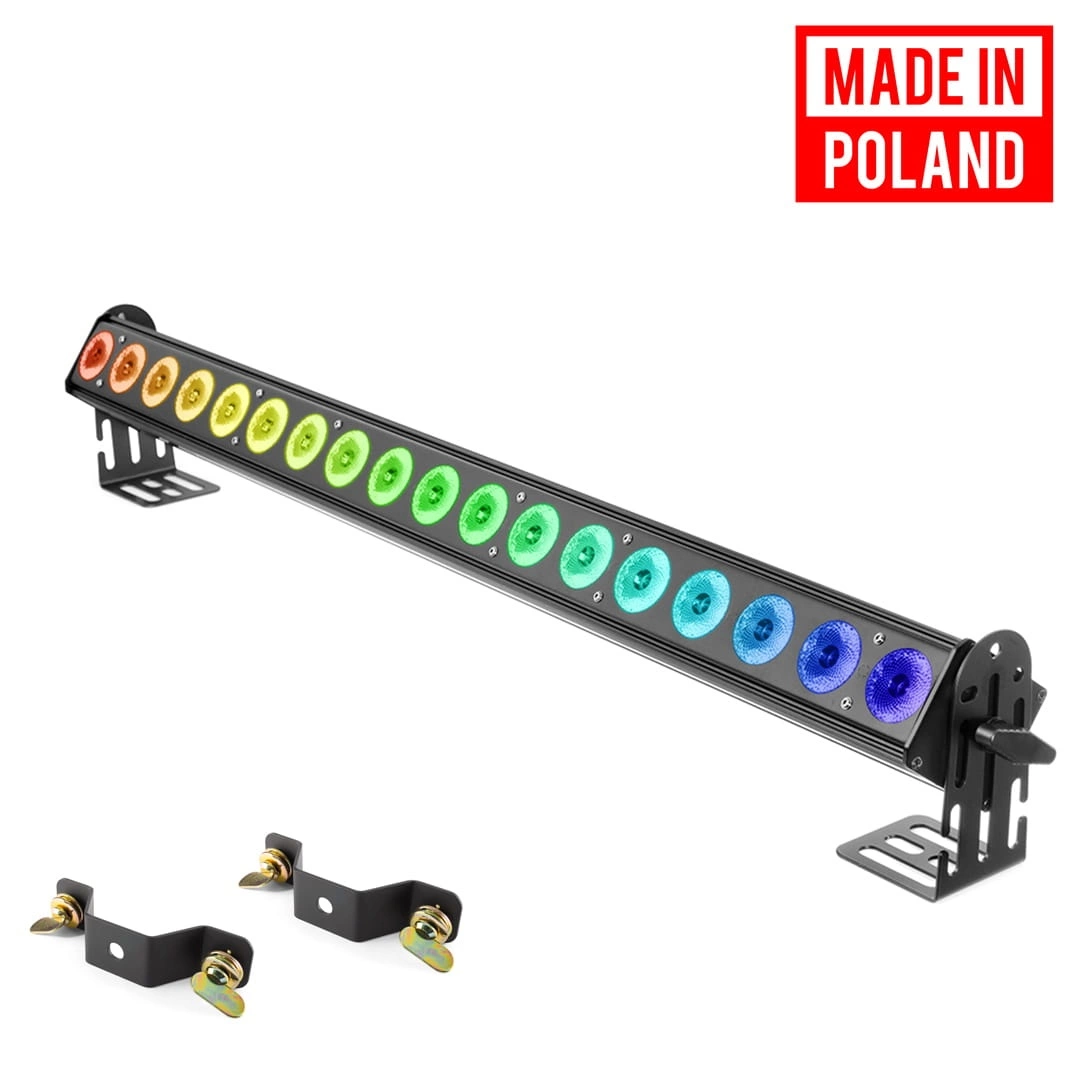 Led Bar RGBW wyposażony został w 18 diod RGBW o mocy 10W każda