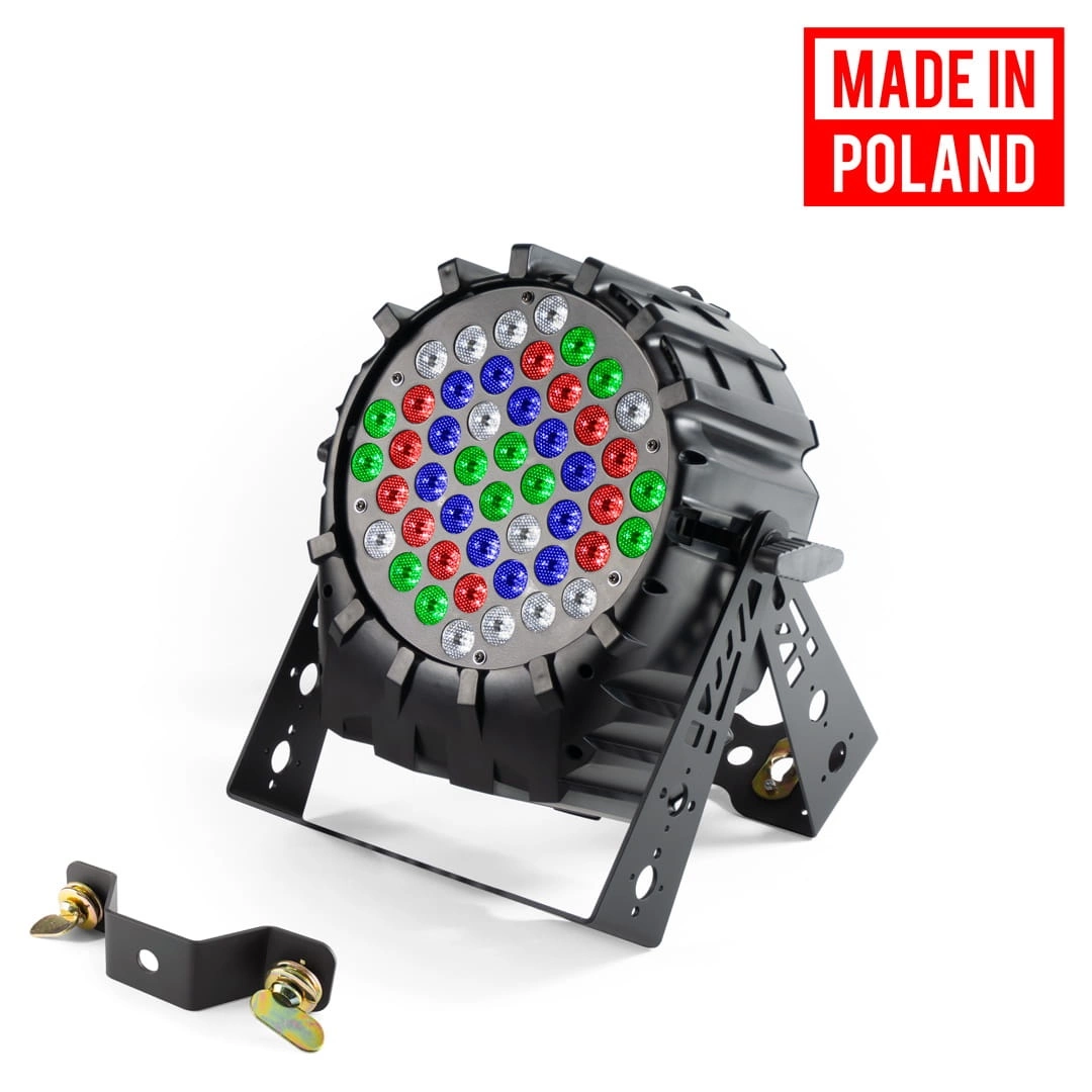 Professional LED PAR equipped with 48 high-quality 3W LEDs, emitting a virtually unlimited combination of extremely bright RGBW colors. Thanks to its power, the device perfectly illuminates stage surfaces. Additionally, the reflector is equipped with a universal double handle, which makes it very easy to hang it or simply place it on the ground