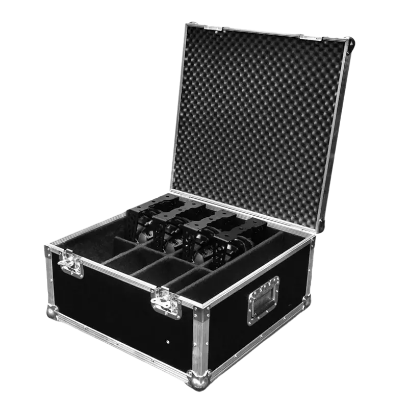 Caja de transporte masiva para 8 dispositivos de la serie Flash PRO.Gracias a sus compartimentos internos, asegurarás el almacenamiento y transporte seguro de doce dispositivos, junto con cables y accesorios.La caja está reforzada con perfiles de aluminio y tiene esquinas esféricas en sus bordes, que además aseguran la estructura y protegen el entorno eliminando los bordes afilados.Se abre por un lado y el ángulo de inclinación adecuado evita que la parte superior de la caja se caiga, proporcionando un acceso fácil y cómodo a los objetos almacenados.Centro con compartimentos, acolchado con suave espuma técnica, que protege perfectamente los objetos almacenados contra daños. A los lados de la caja hay cómodas asas para su transporte. La caja está destinada a productos de la serie: Flash Professional LED Par Slim.