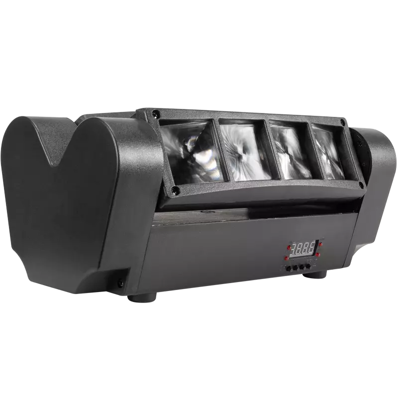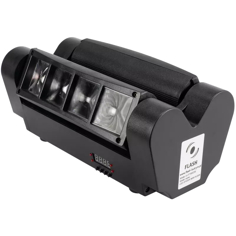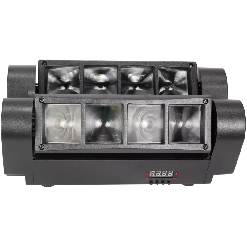 M-BAR-DOUBLE LED SPIDER MINI está equipado con 8 diodos RGBW de 3W de potencia cada uno, con función de control único de cada diodo (ángulo de haz 4,5⁰).El dispositivo proporciona un control suave del brillo, bajo consumo de energía, varios modos de funcionamiento, 25 efectos preparados, doble INCLINACIÓN 135⁰ y ángulo de iluminación (120⁰).Todas estas características hacen del producto una herramienta útil para todo DJ, asegurando excelentes resultados.