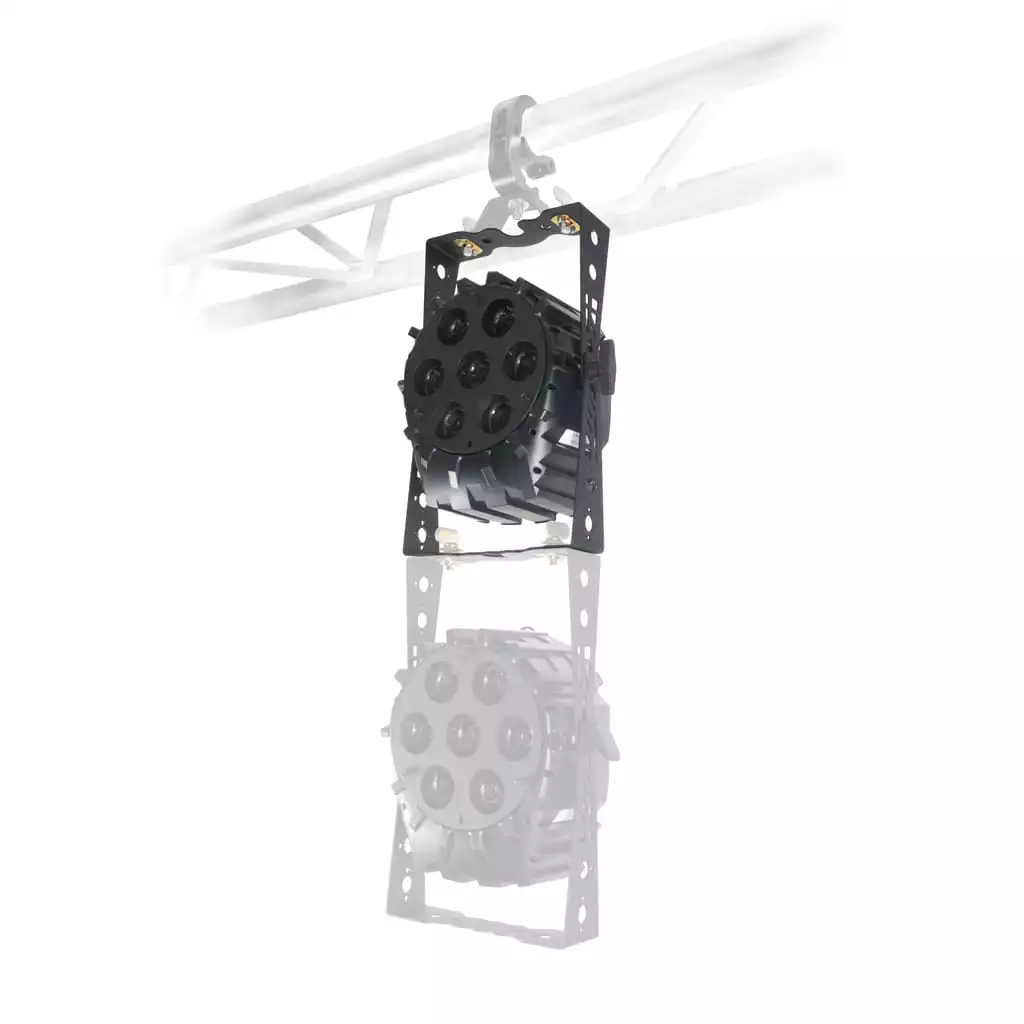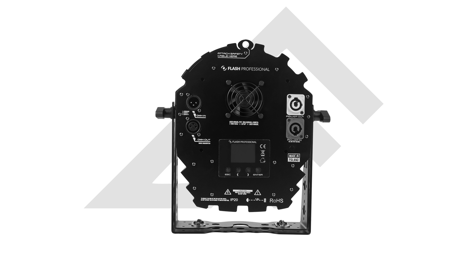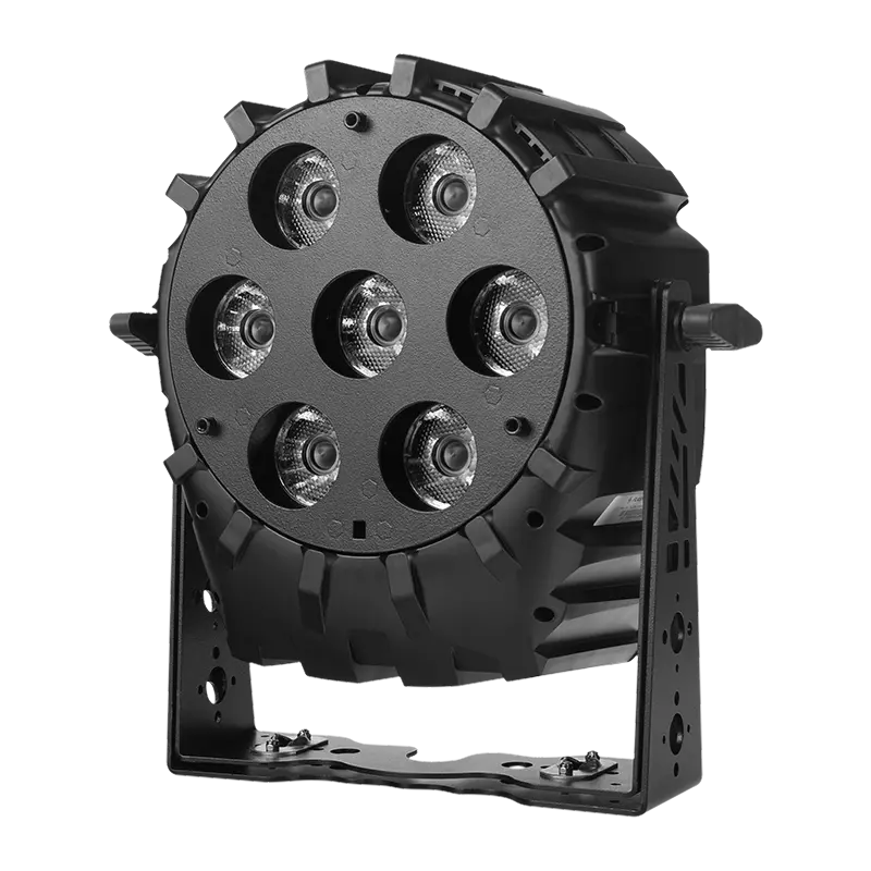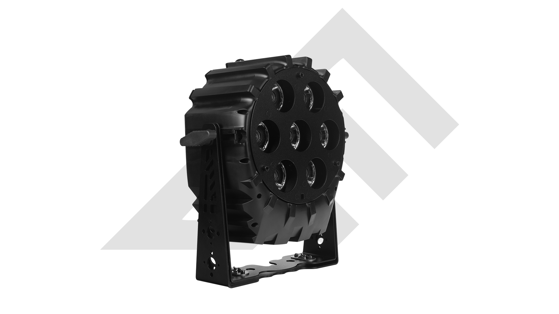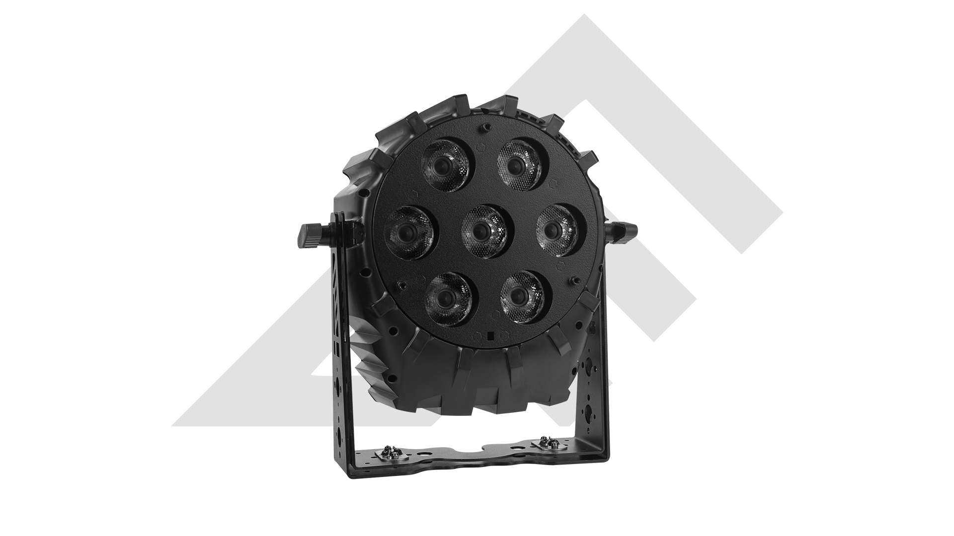 Foco PAR LED de siete diodos con una potencia total de 70W, ahora en versión con interfaz DMX inalámbrica. La no necesidad de conectar los faros con cables a la señal de control abre innumerables posibilidades para que el usuario utilice este dispositivo en lugares donde la instalación de iluminación es significativamente difícil o requiere un trabajo rápido. Cuando las condiciones hacen imposible tender cables, la interfaz DMX inalámbrica le permite mantener la comunicación y utilizar todo el espectro de capacidades del foco disponibles sólo cuando se controla por DMX. Además, el reflector está equipado con un asa doble universal, lo que hace que sea muy fácil colgarlo o simplemente colocarlo en el suelo.
