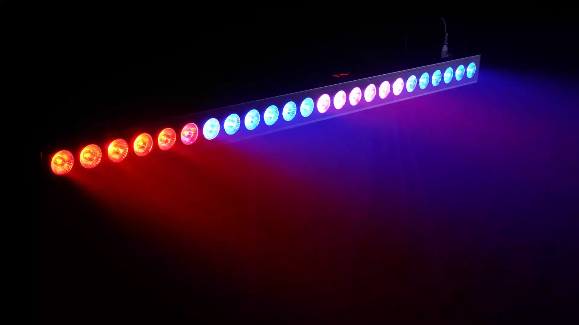 LedBar 243 RGB es una barra LED de ocho secciones equipada con 24 diodos de alta calidad que garantizan una mezcla fluida de colores RGB. El dispositivo tiene una carcasa de aluminio, refrigeración activa, conectores XLR y PowerCON IN/OUT incorporados y una doble manija que permite una rápida instalación del dispositivo sobre una estructura o sobre su pie. Además, esta barra LED permite muchos modos de control: DMX512, control de sonido, control automático, maestro-esclavo, control IR, y su ángulo de iluminación fijo garantiza un flujo de luz direccional uniforme.