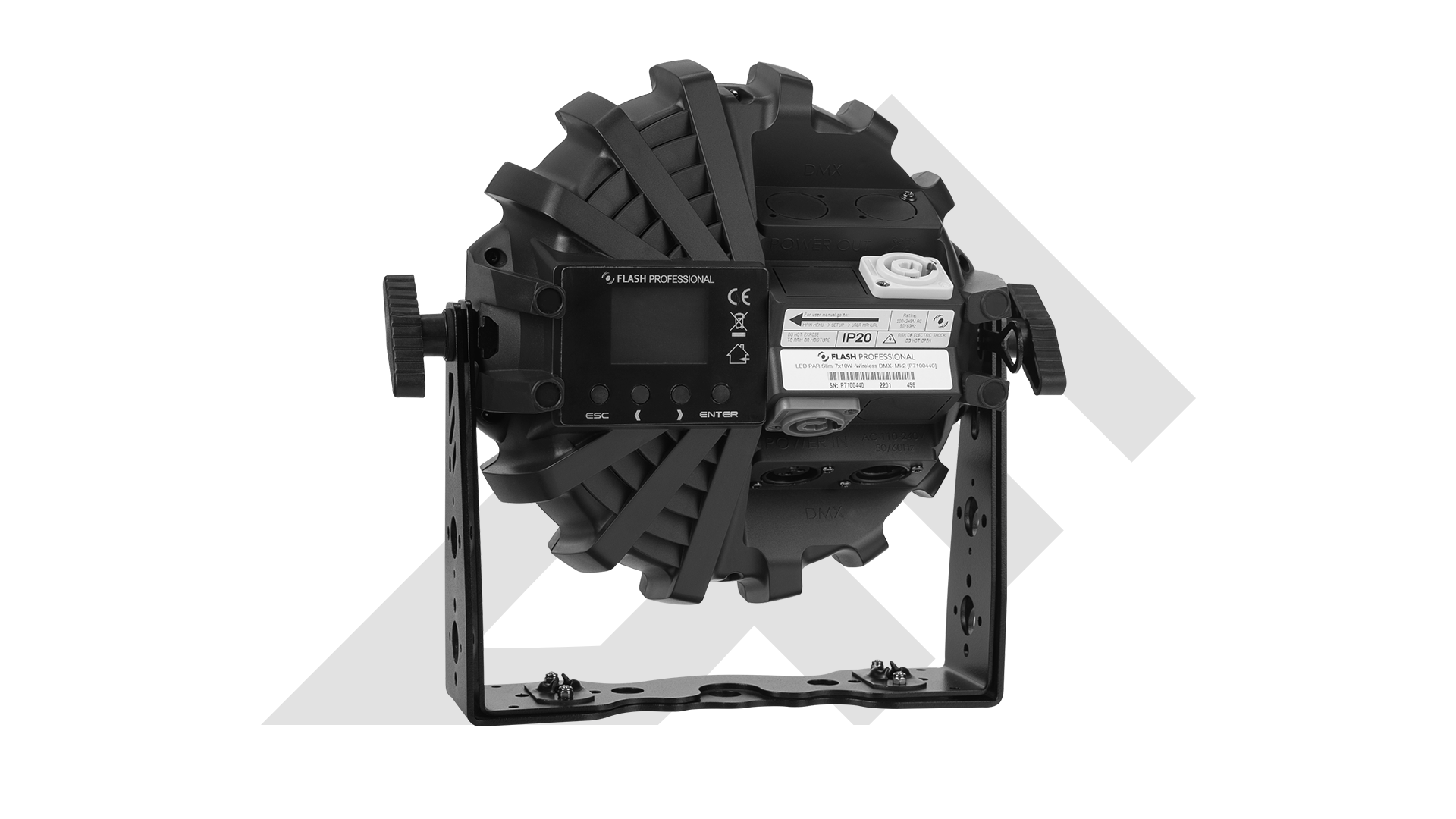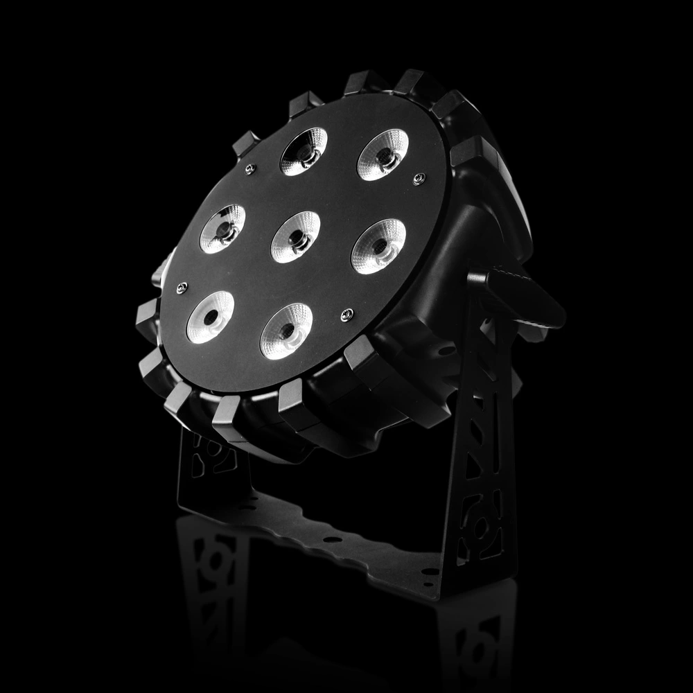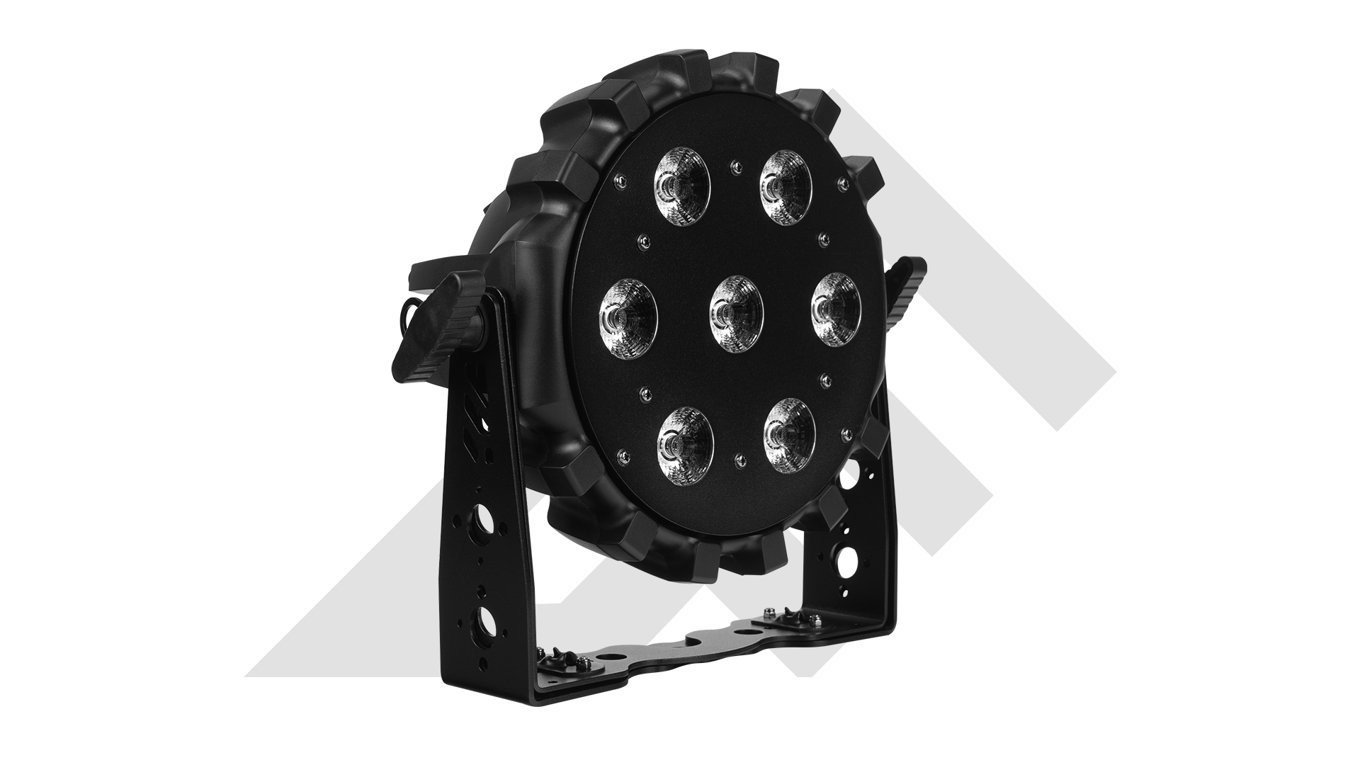 Foco LED PAR Slim de siete diodos con una potencia total de 70W, ahora en versión con interfaz DMX inalámbrica y ángulo de iluminación de 25°. La no necesidad de conectar los faros con cables a la señal de control abre innumerables posibilidades para que el usuario utilice este dispositivo en lugares donde la instalación de iluminación es significativamente difícil o requiere un trabajo rápido. Cuando las condiciones hacen imposible tender cables, la interfaz DMX inalámbrica le permite mantener la comunicación y utilizar todo el espectro de capacidades del foco disponibles sólo cuando se controla por DMX.