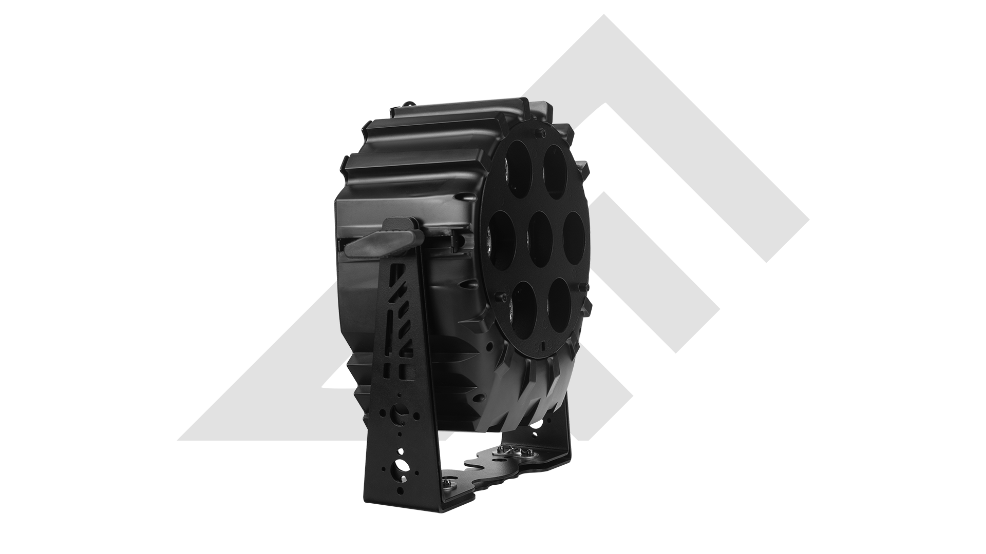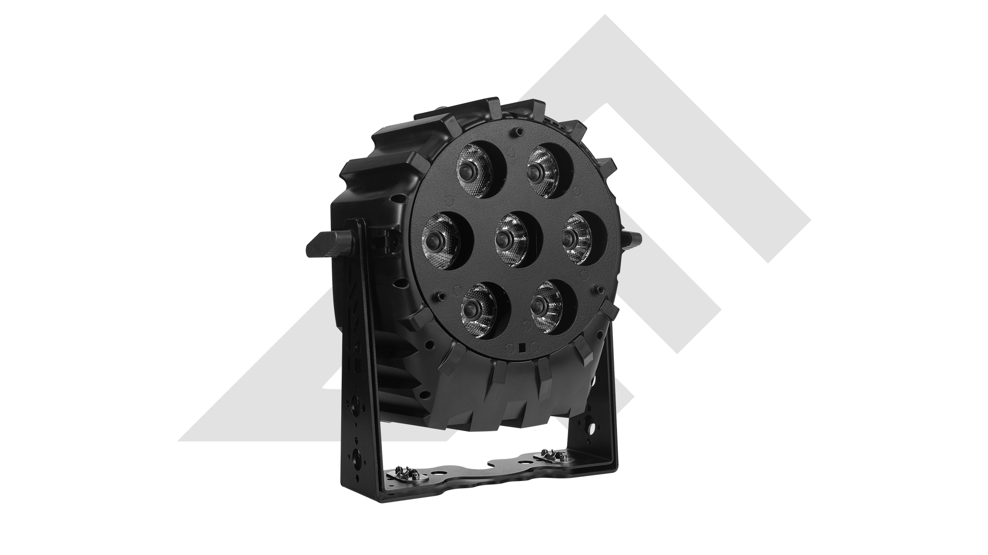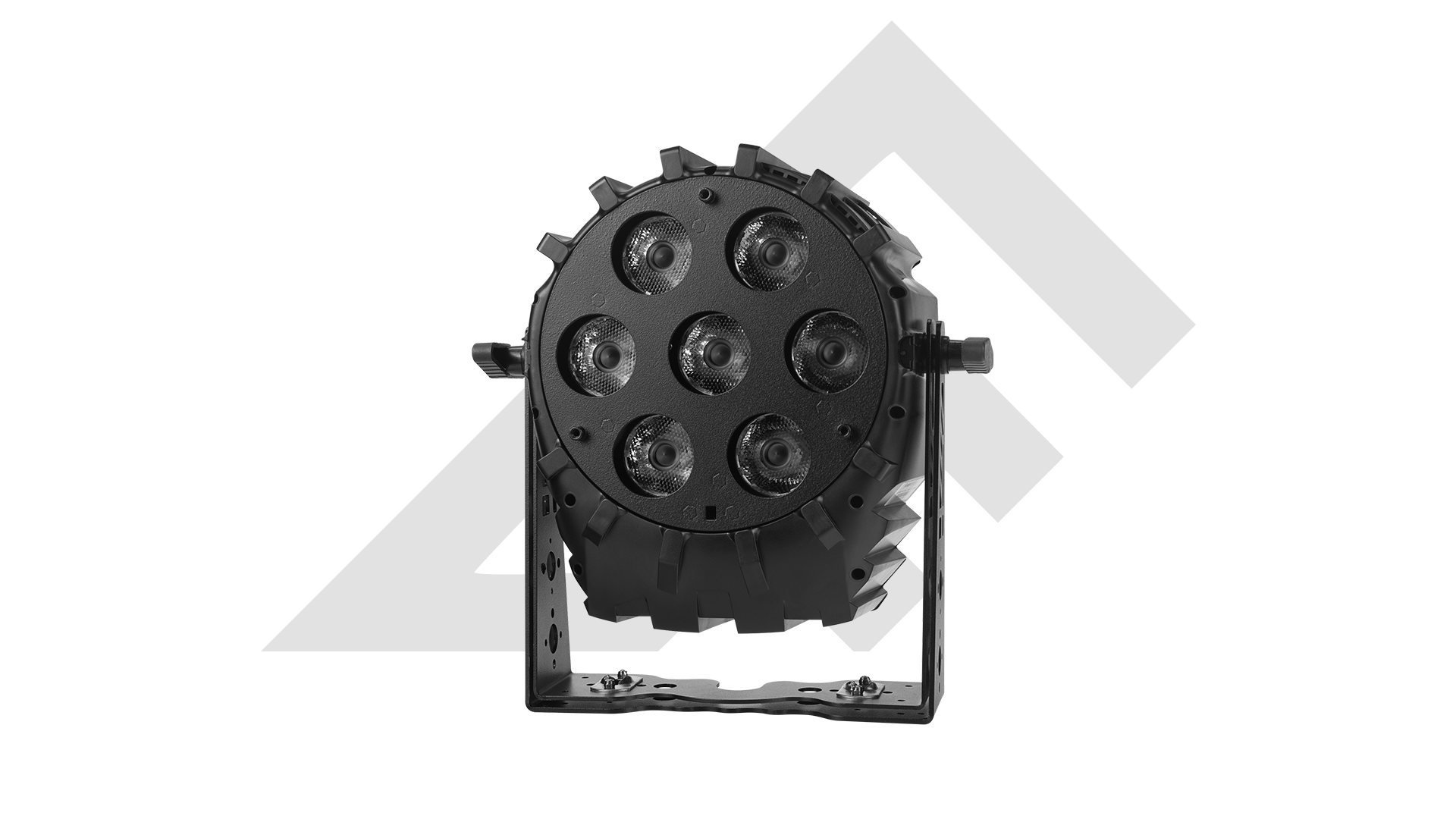 Foco PAR LED de siete diodos con una potencia total de 70W. Todos ellos proporcionan una luz intensa y de largo alcance, emitiendo una combinación prácticamente ilimitada de colores extremadamente brillantes. Además, el reflector está equipado con un asa doble universal, lo que hace que sea muy fácil colgarlo o simplemente colocarlo en el suelo.