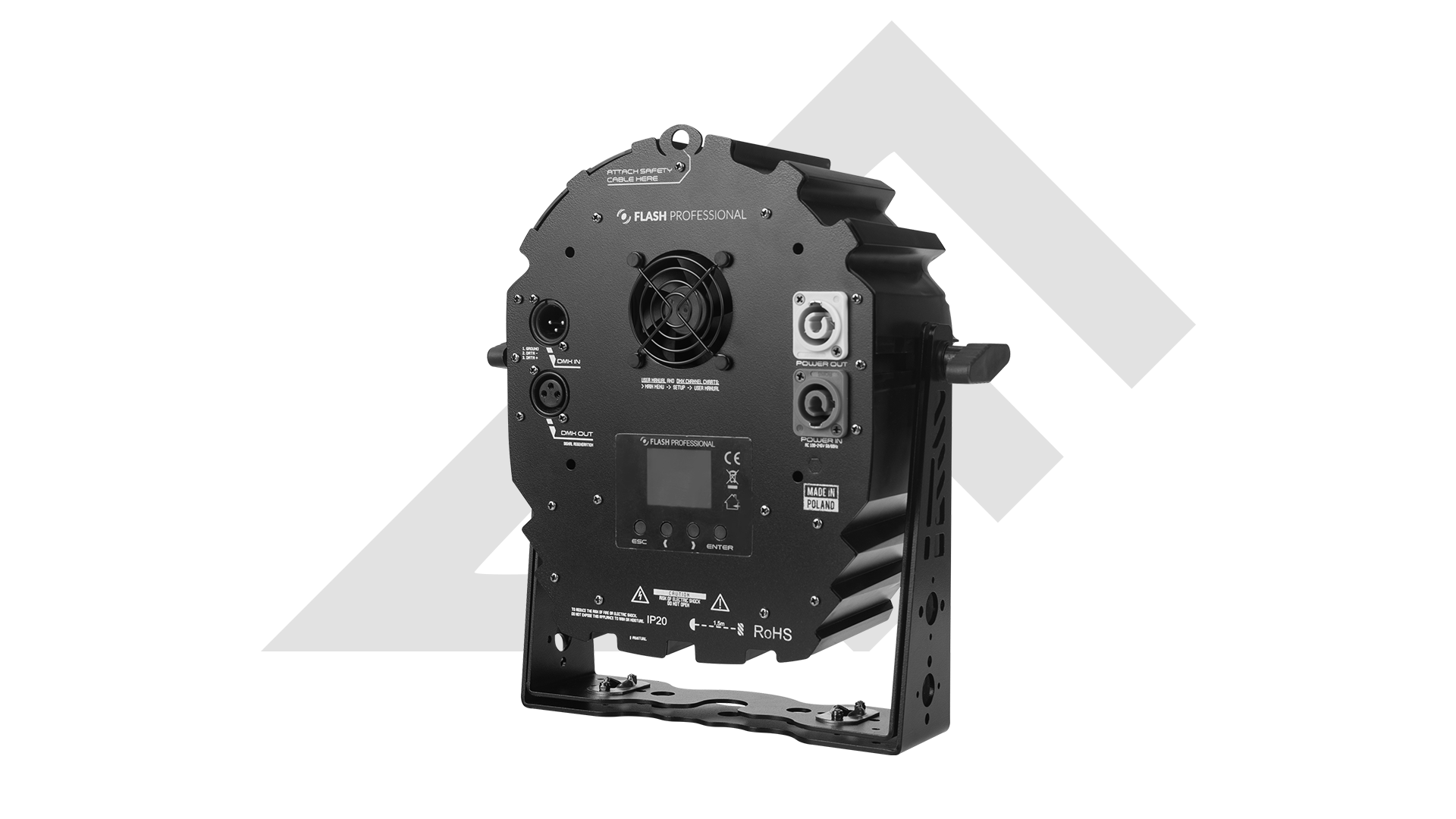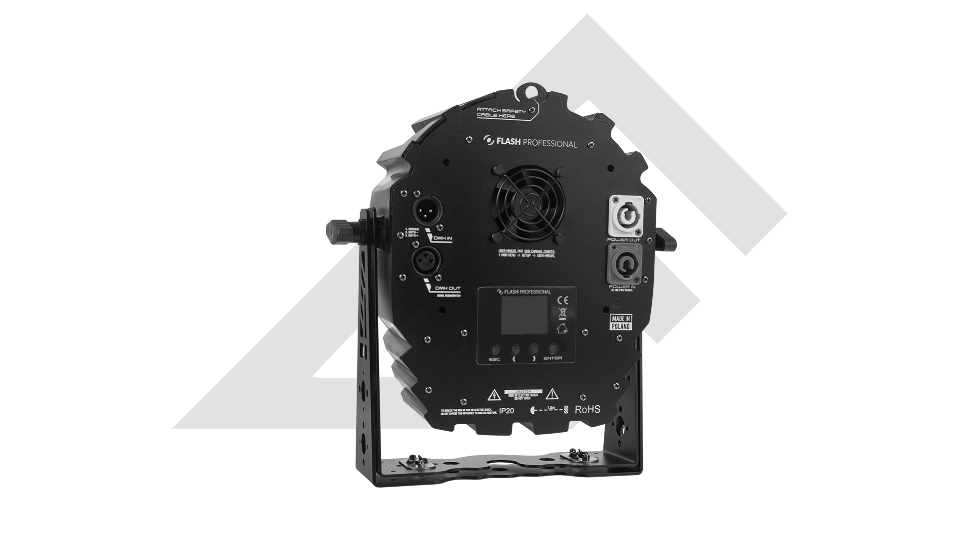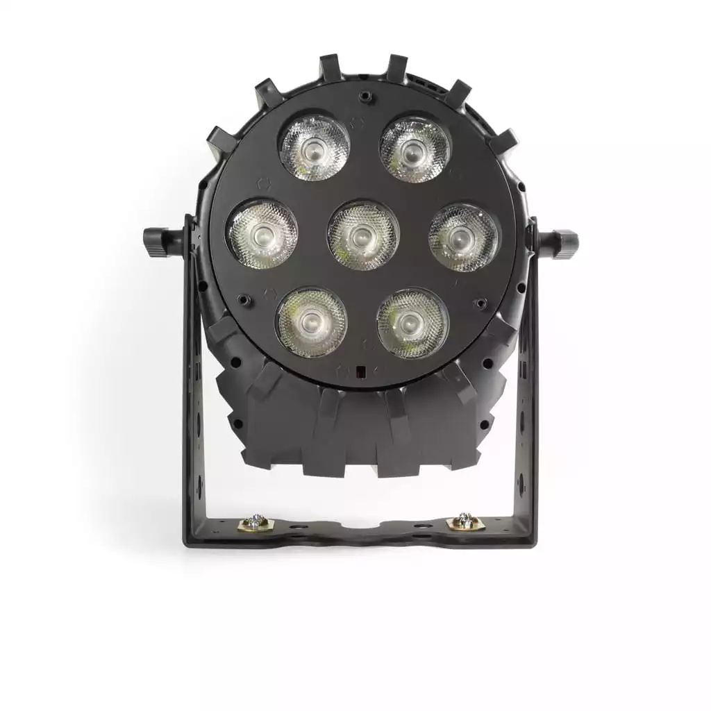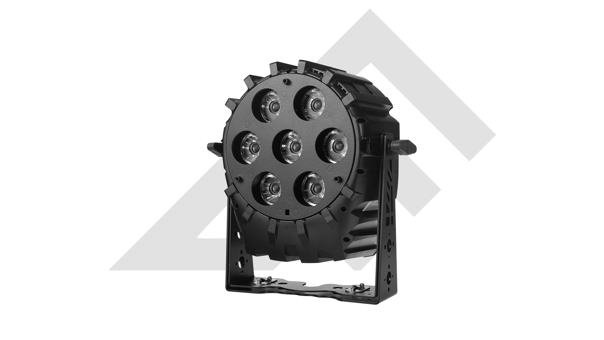 Foco PAR LED de siete diodos con una potencia total de 70W. Todos ellos proporcionan una luz intensa y de largo alcance, emitiendo una combinación prácticamente ilimitada de colores extremadamente brillantes. Además, el reflector está equipado con un asa doble universal, lo que hace que sea muy fácil colgarlo o simplemente colocarlo en el suelo.