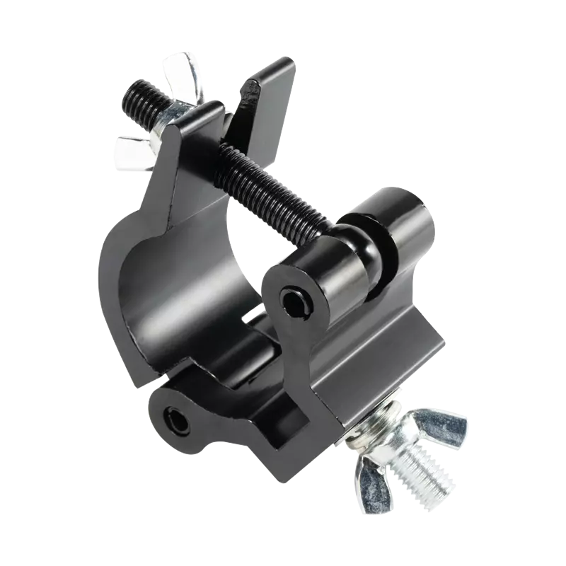 Profesjonalny uchwyt (hak) szybko montażowy, umożliwiający przymocowanie wszelkiego rodzaju urządzeń estradowych, oświetleniowych, do rurowych konstrukcjach aluminiowych o średnicy 50 mm. Przykręcony bezpośrednio do urządzenia hak, umożliwia szybki montaż, dzięki zastosowaniu wygodnej śrubie motylkowej.Solidna konstrukcja sprawia że hak wytrzymuje obciążenie do 500 kg.