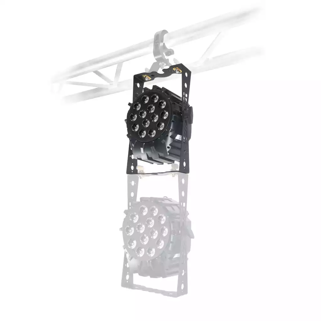 Reflektor wyposażony został w czternaście diod RGBW o mocy 10W każda. Wszystkie z nich zapewniają mocne światło o dalekim zasięgu, emitującym praktycznie nieograniczoną kombinację niezwykle jasnych barw. Reflektor jest wyposażony w uniwersalny podwójny uchwyt, dzięki któremu bardzo łatwo go zawiesić lub po prostu postawić na ziemi.