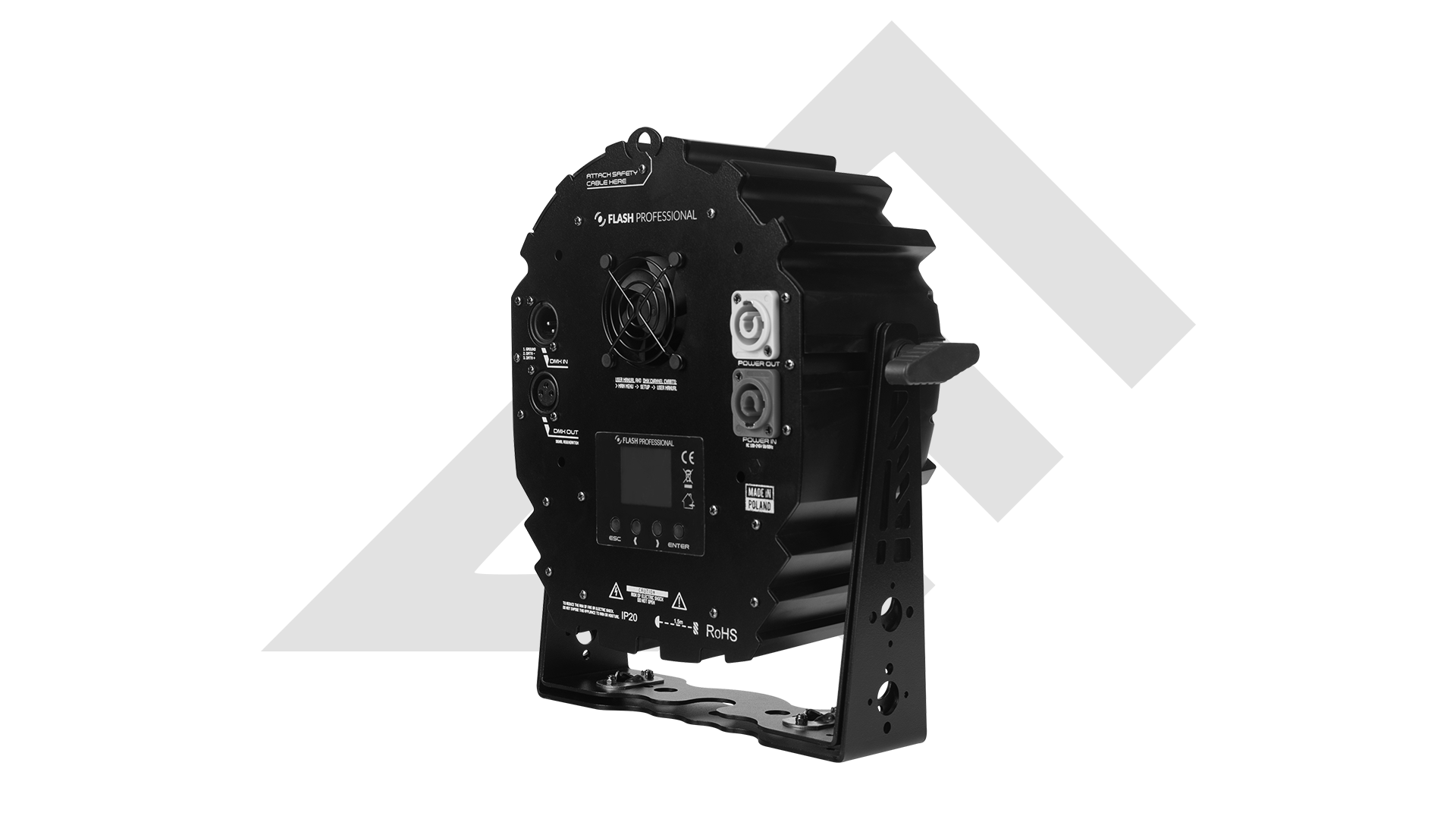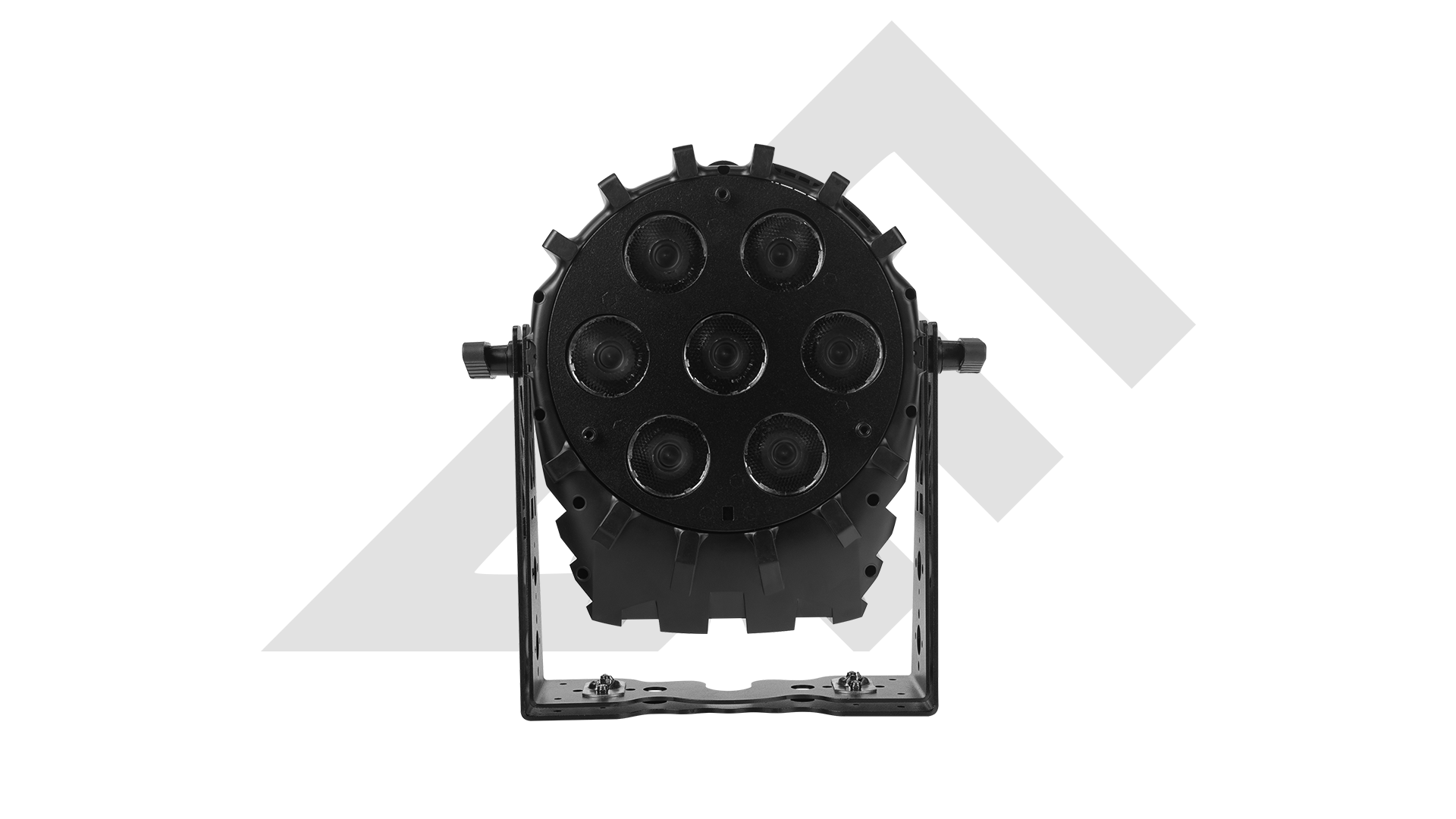 Reflektor LED PAR z siedmioma diodami o łącznej mocy 70W teraz w wersji z bezprzewodowym interfejsem DMX. Brak konieczności łączenia reflektorów przewodami z sygnałem sterującym otwiera przed użytkownikiem niezliczone możliwości wykorzystania tego urządzenia w miejscach, gdzie instalacja oświetlenia jest znacznie utrudniona lub wymaga szybkiego tempa pracy. Tam, gdzie warunki uniemożliwiają prowadzenie kabli, bezprzewodowy interfejs DMX pozwala na utrzymanie łączności i wykorzystanie pełnego spektrum możliwości reflektora dostępnego jedynie podczas sterowania przez DMX. Dodatkowo reflektor jest wyposażony w uniwersalny podwójny uchwyt, dzięki któremu bardzo łatwo go zawiesić lub po prostu postawić na ziemi.