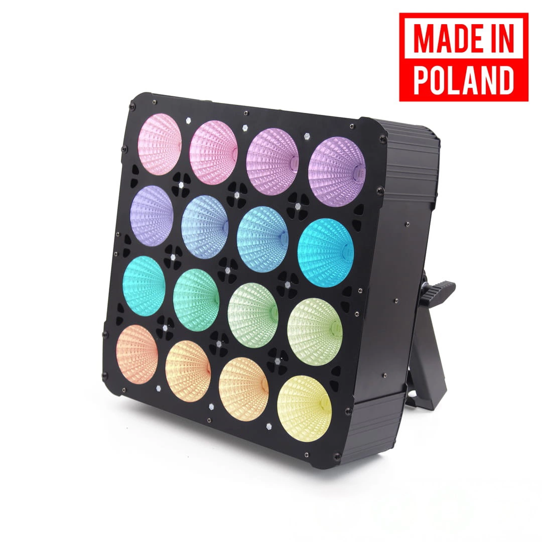 Blinder z szesnastoma diodami LED COB o łącznej mocy 30W każda. Emituje mocne światło, barwy ciepłej oraz zimnej o dalekim zasięgu. Dzięki swojej mocy, doskonale oświetla każdą przestrzeń w której się znajduje.Masywna konstrukcja, wysoka jakość wykonania oraz materiały zapewniające dużą trwałość, czyniąc to urządzenie doskonałym narzędziem zarówno dla wymagających użytkowników jak i osób ceniących prostotę i niezawodność.