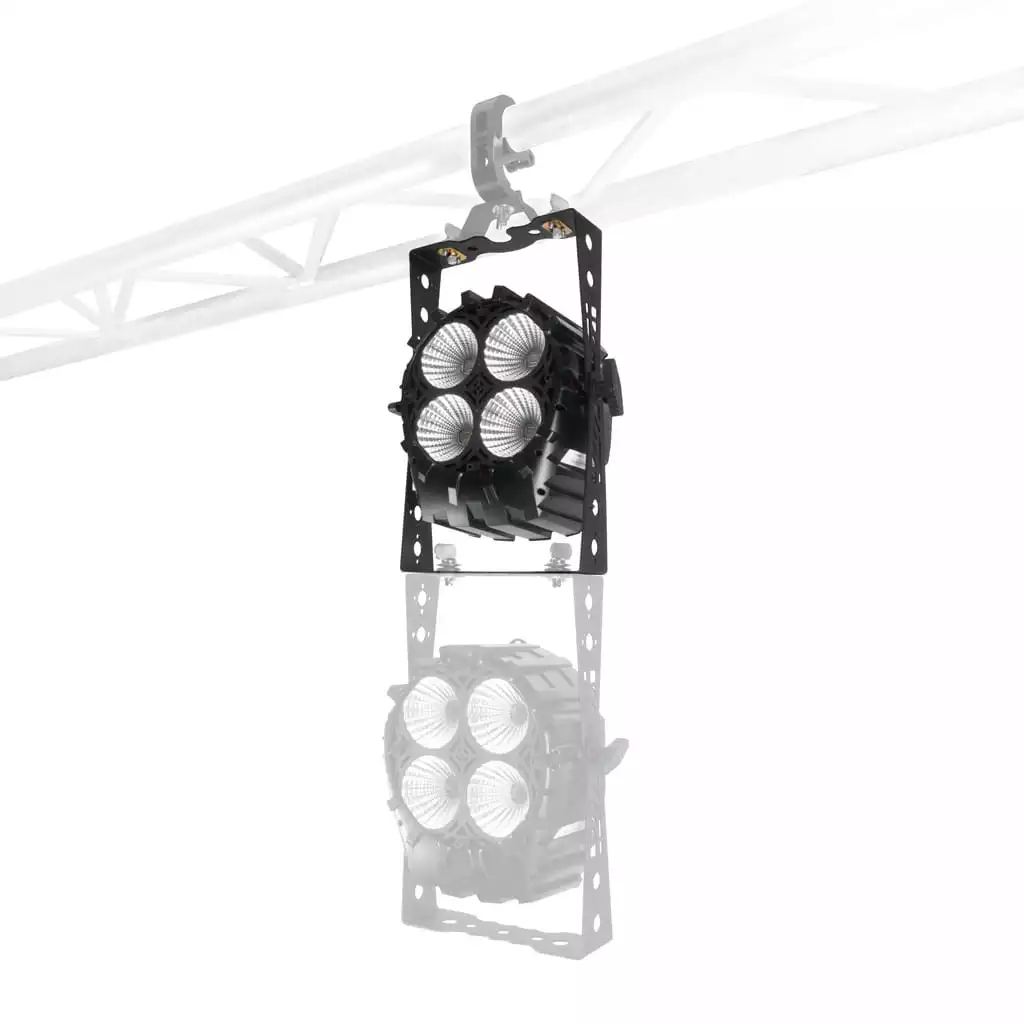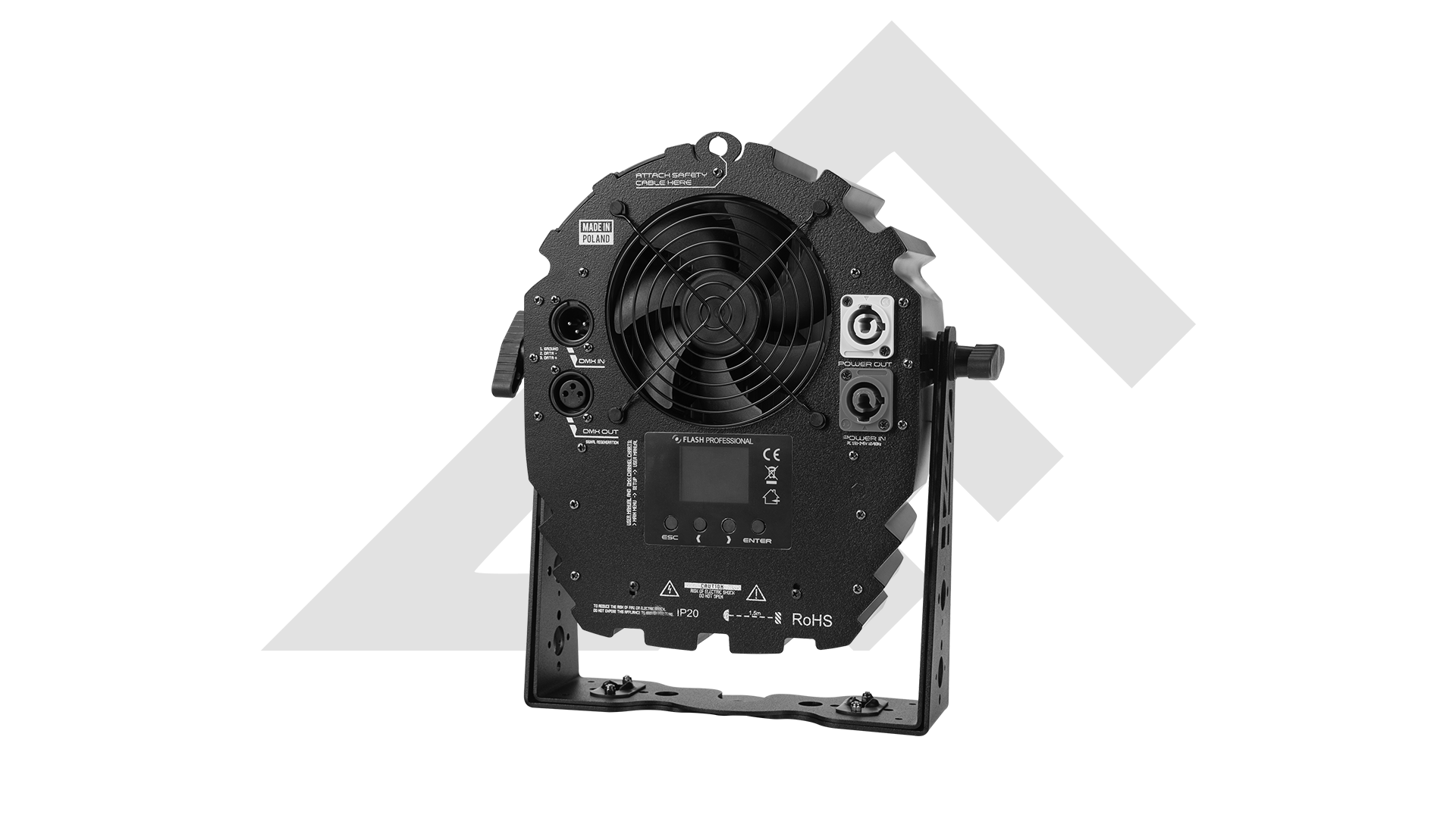 Reflektor wyposażony został w cztery mocne diody RGBW o łącznej mocy 120W. Wszystkie z nich zapewniają mocne światło o dalekim zasięgu, emitującym praktycznie nieograniczoną kombinację niezwykle jasnych barw.Wyjątkowe wzornictwo, wysoka jakość wykonania oraz materiały zapewniające dużą trwałość czynią to urządzenie doskonałym narzędziem zarówno dla wymagających użytkowników jak i osób ceniących prostotę i niezawodność. Reflektor jest wyposażony w uniwersalny podwójny uchwyt, dzięki któremu bardzo łatwo go zawiesić lub po prostu postawić na ziemi.