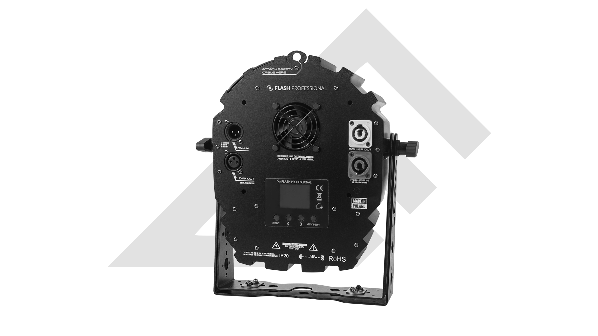 Reflektor LED PAR z siedmioma diodami o łącznej mocy 70W. Wszystkie z nich zapewniają mocne światło o dalekim zasięgu, emitującym praktycznie nieograniczoną kombinację niezwykle jasnych barw. Dodatkowo reflektor jest wyposażony w uniwersalny podwójny uchwyt, dzięki któremu bardzo łatwo go zawiesić lub po prostu postawić na ziemi